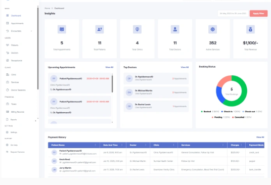 ClinicPro provides hospital administrators, doctors, receptionists, and patients with dedicated, well-structured dashboards where appointments are clearly organized and seamlessly managed from start to finish.